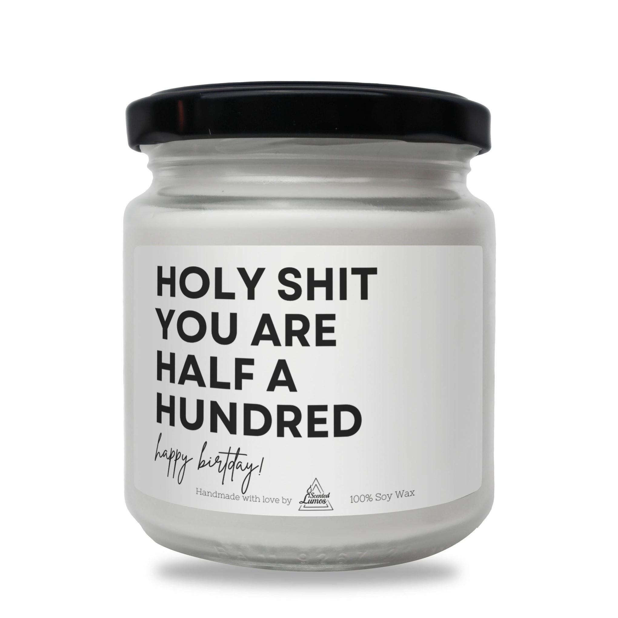 Holy shit you're half a hundred Birthday Scented Soy Candle