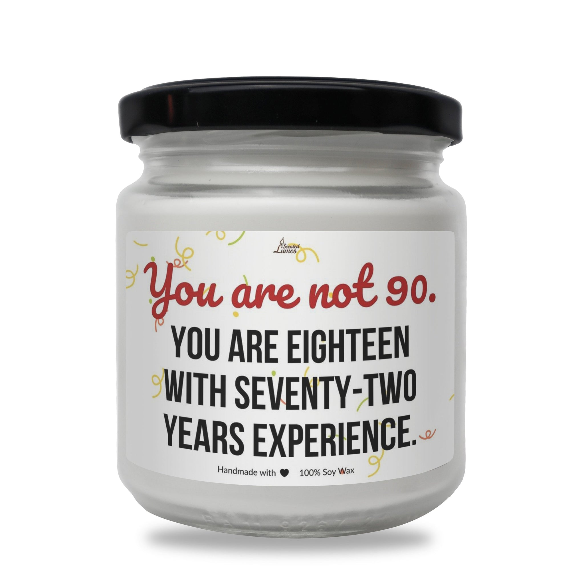 You are 18 with 72 years experience Best 90th Birthday Gift Scented Soy Candle