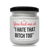You had me at “I hate that bitch too” Scented Soy Candle