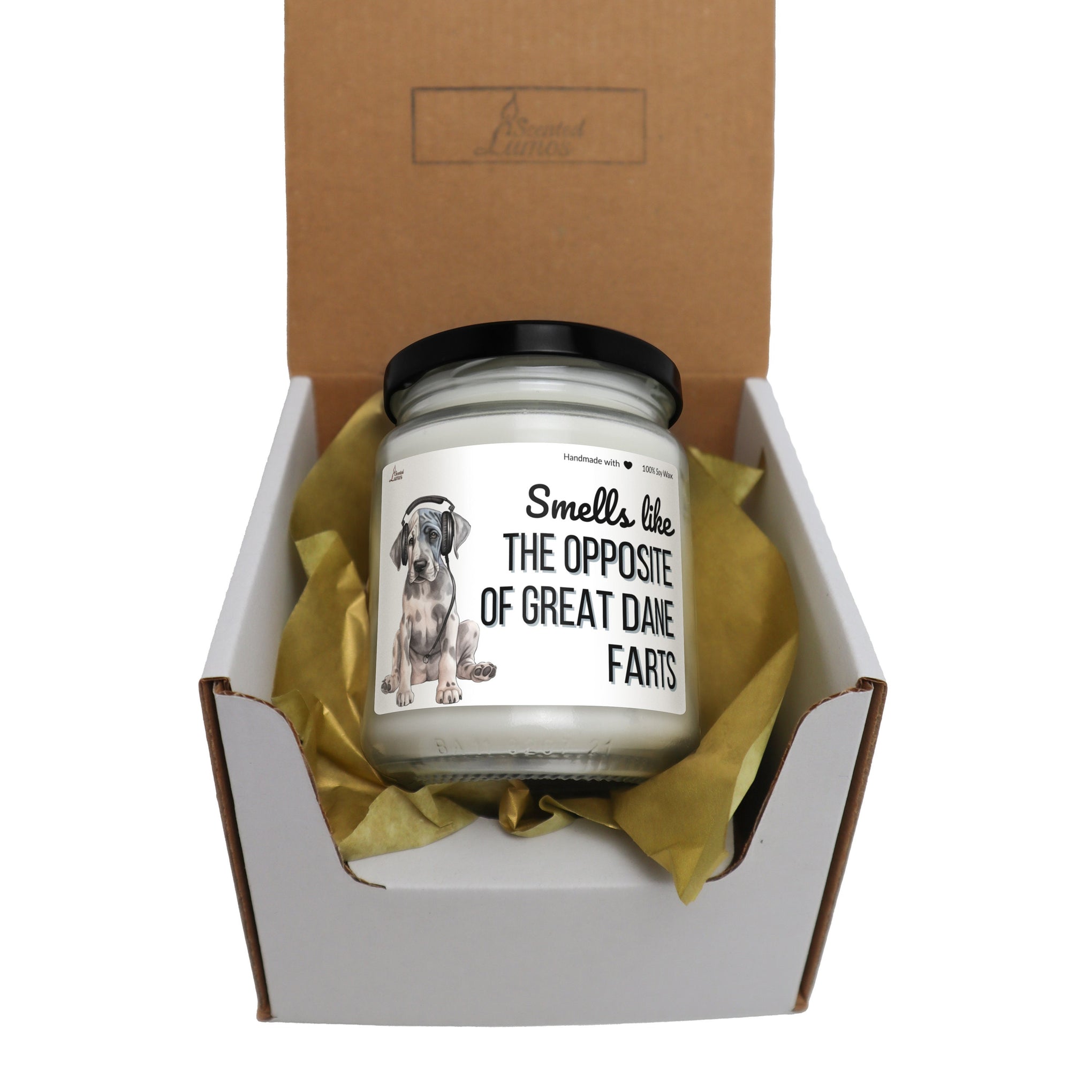 Introducing a unique candle, gift for friends, family, colleagues, with a cool design: Smells like the opposite of Great Dane farts perfect for celebrating a dog owner, Great Dane owner for their Birthday, Christmas, Mother's Day, Father's Day or any other special day.