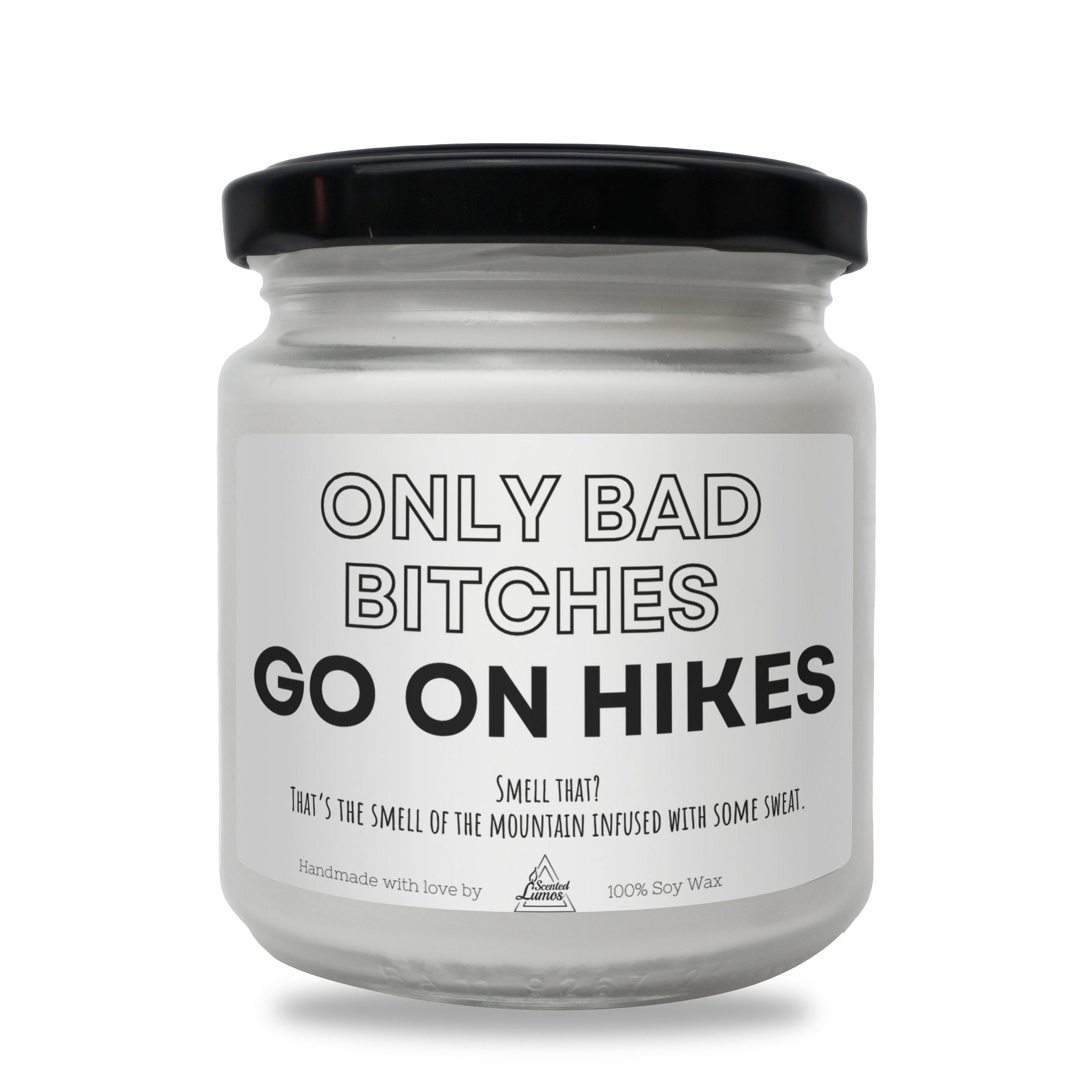 Introducing a unique candle, gift for friends, family, colleagues, with a cool design: Only bad bitches go on hikes perfect for celebrating a Hiker for their Birthday, Christmas, Mother's Day, Anniversary or any other special day.