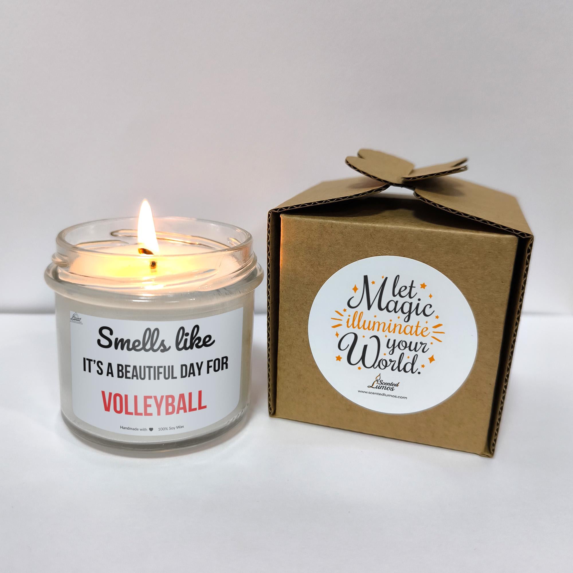 Introducing a unique candle, gift for friends, family, colleagues, with a cool design: Smells like beautiful day for Volleyball perfect for celebrating a Volleyball player, coach, or team for their Birthday, Christmas, Mother's Day, Father's Day, End of season, Graduation, Big game, or any other special day.