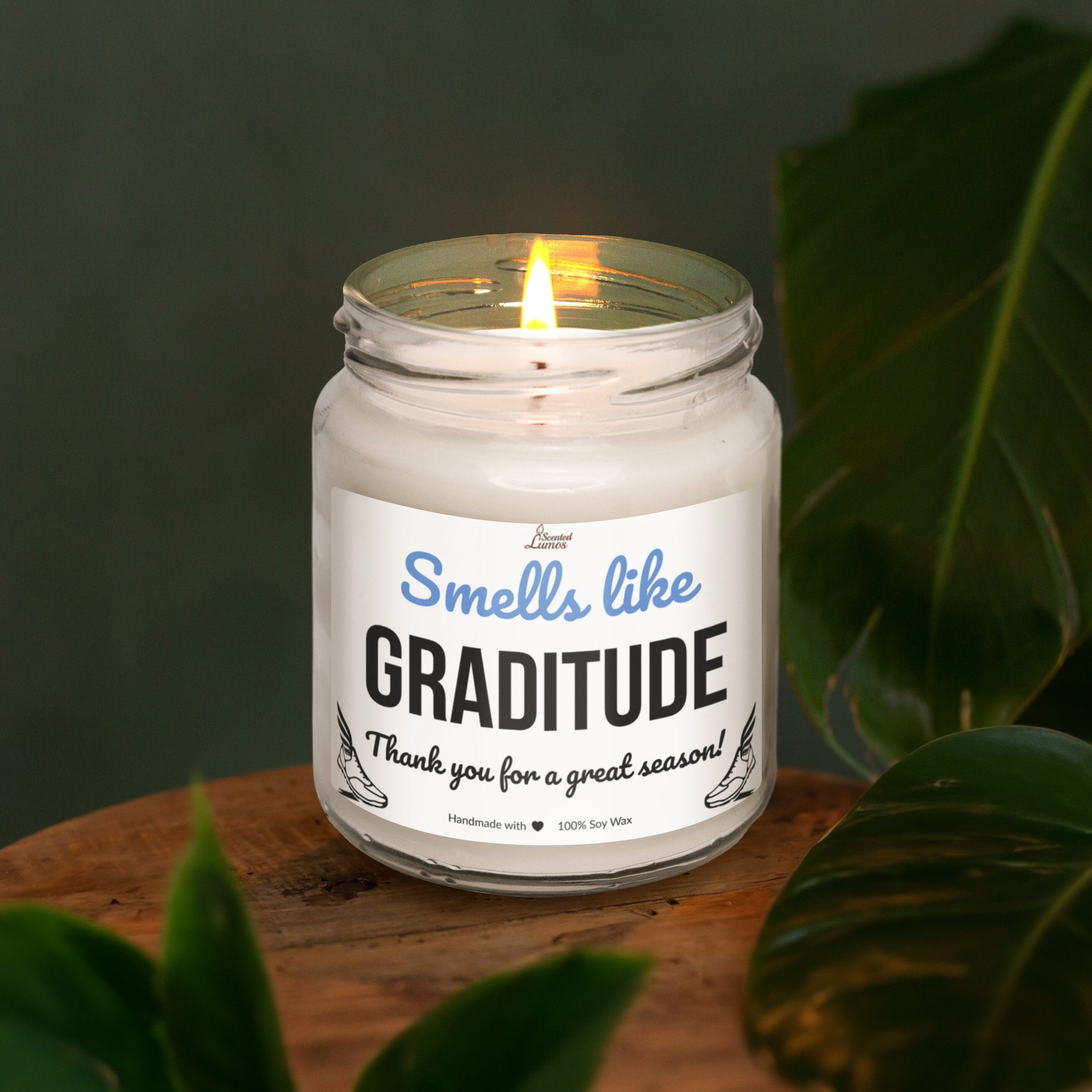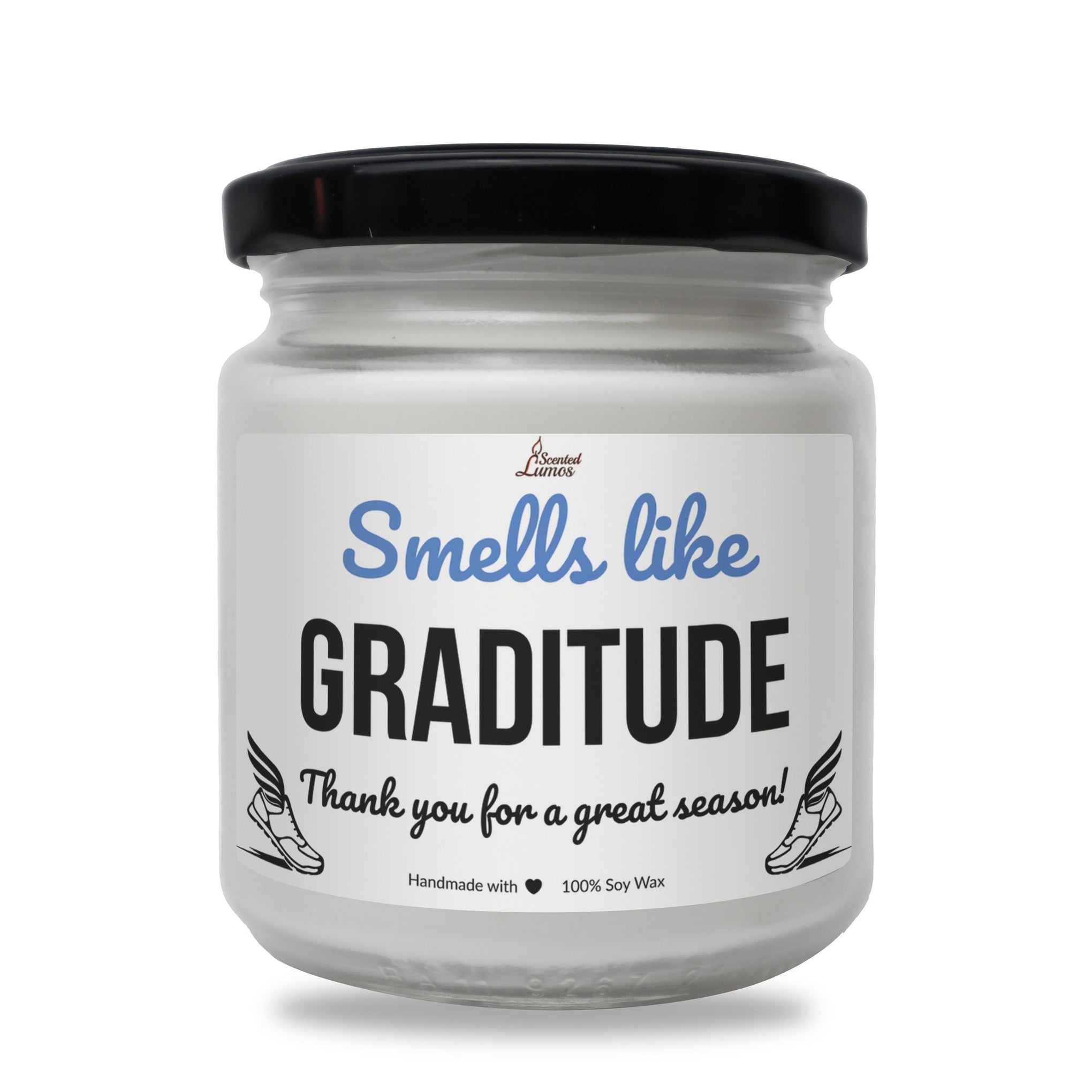 Introducing a unique candle, gift for friends, family, colleagues, with a cool design: Smells like Graditude perfect for celebrating a Coach or cross runner for their Birthday, Christmas, Mother's Day, Father's Day, end of cross-country season or any other special day.