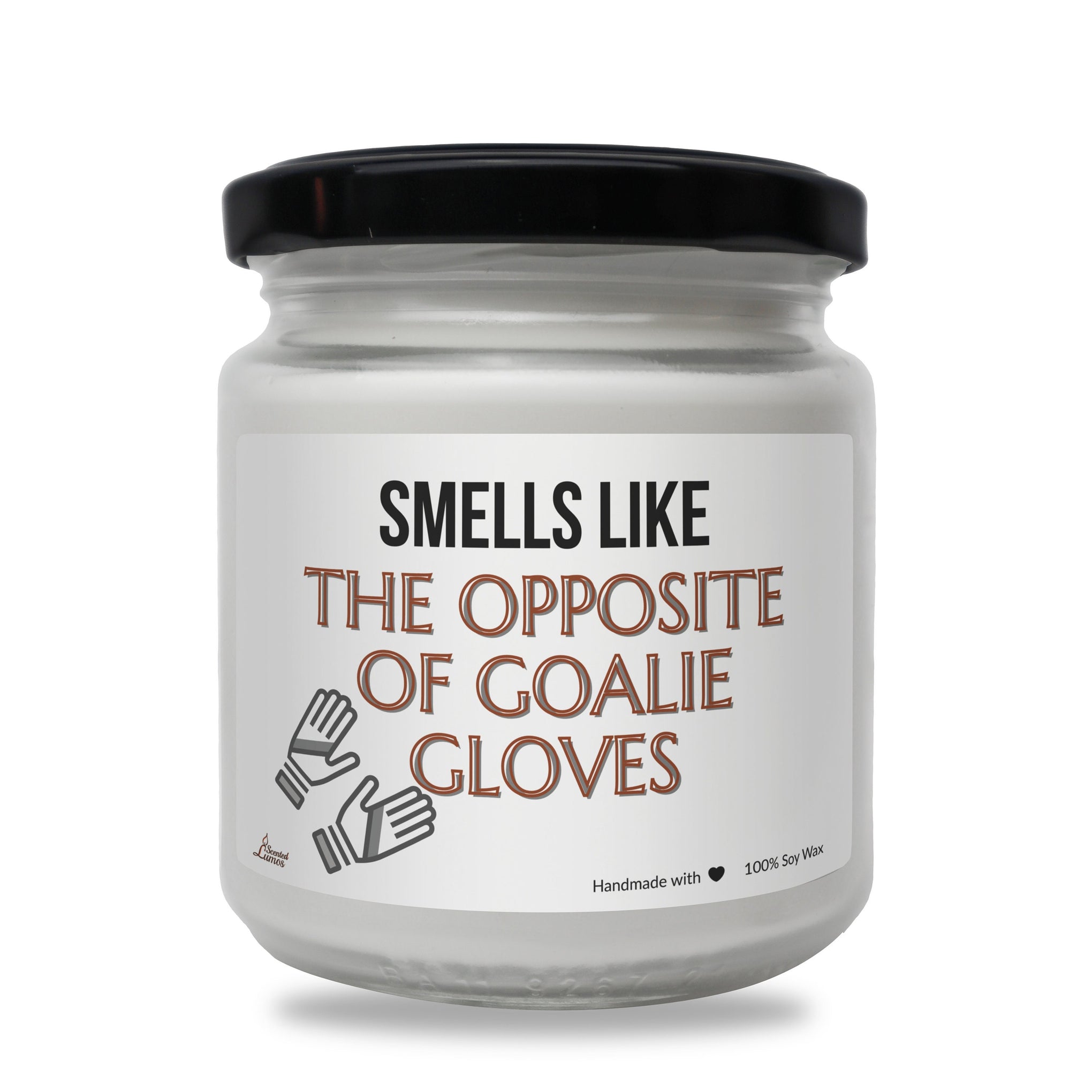 Introducing a unique candle, gift for friends, family, colleagues, with a cool design: Smells like the opposite of Goalie Gloves perfect for celebrating a Football fan, Soccer Goalie or Goalkeeper for their Birthday, Christmas, for Mother's Day, Father's Day, winning an important game or any other special day.