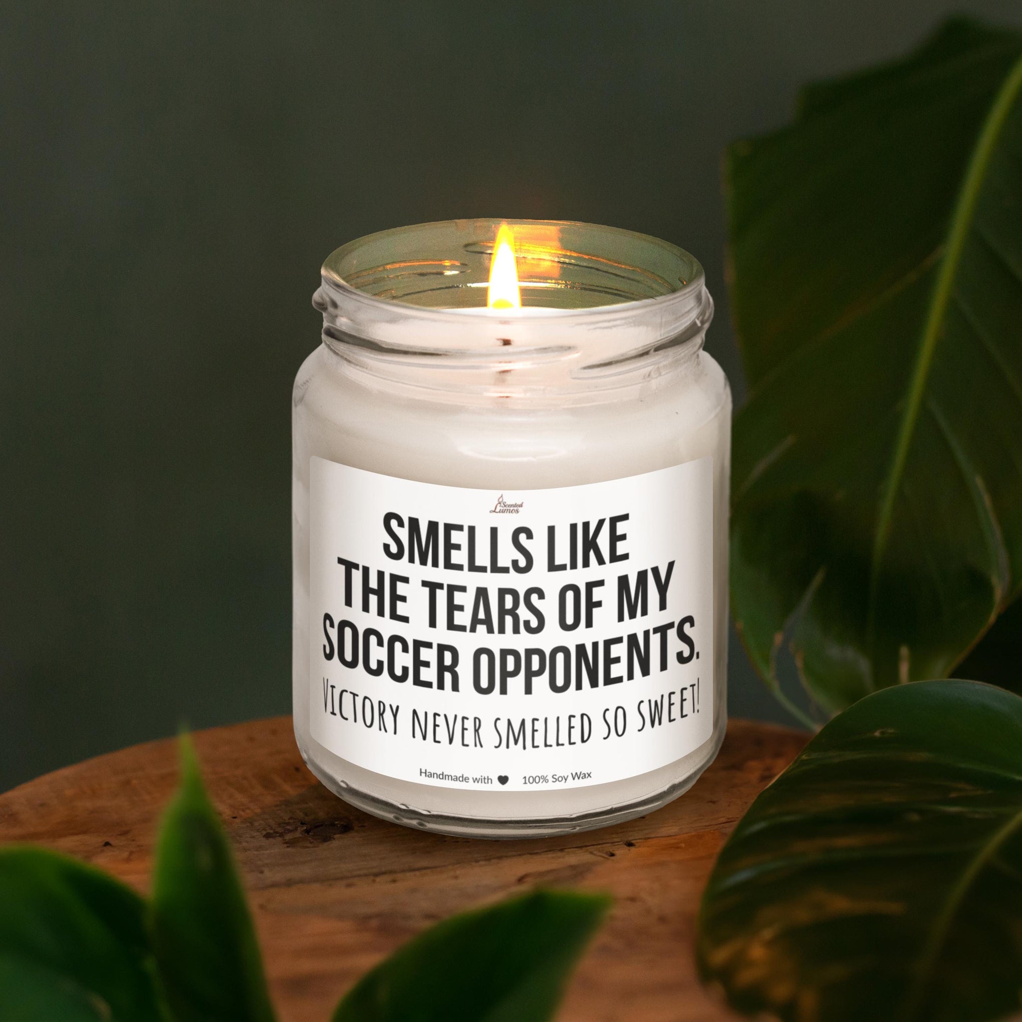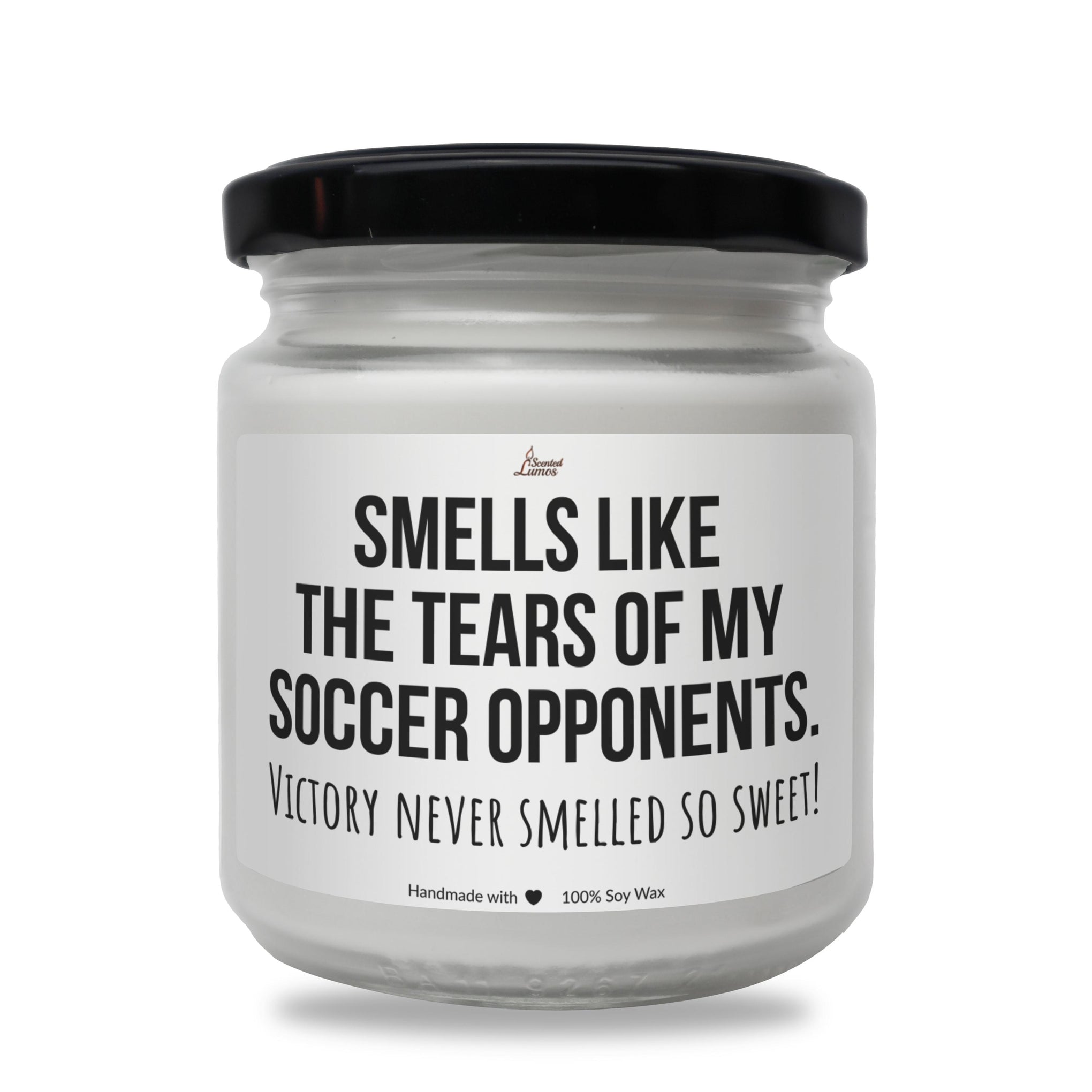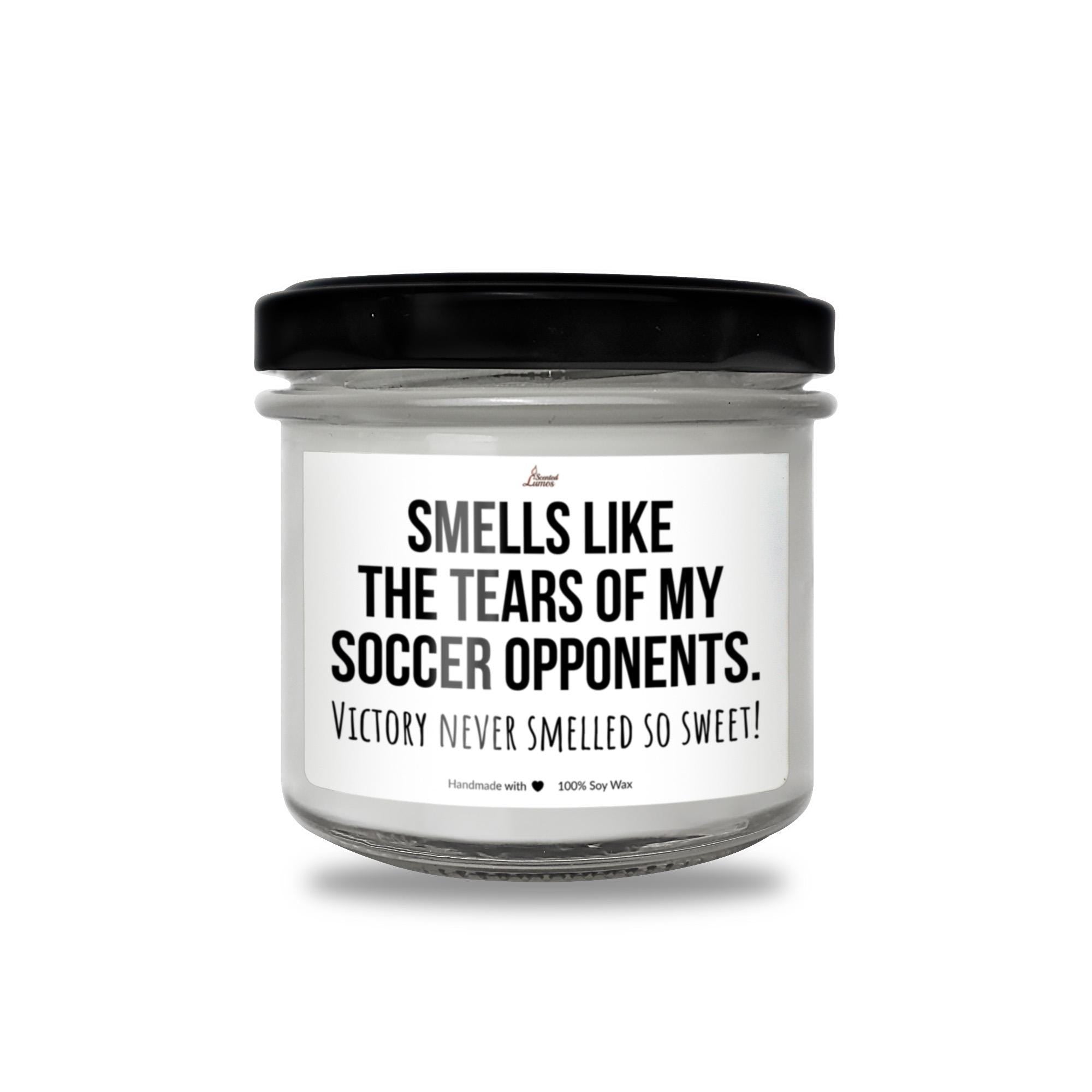 Introducing a unique candle, gift for friends, family, colleagues, with a cool design: Smells like the tears of my Soccer opponents. perfect for celebrating a Soccer player, Soccer teammate, or Soccer coach for their Birthday, Christmas, Mother's Day, Father's Day, National Soccer Day, big win or any other special day.