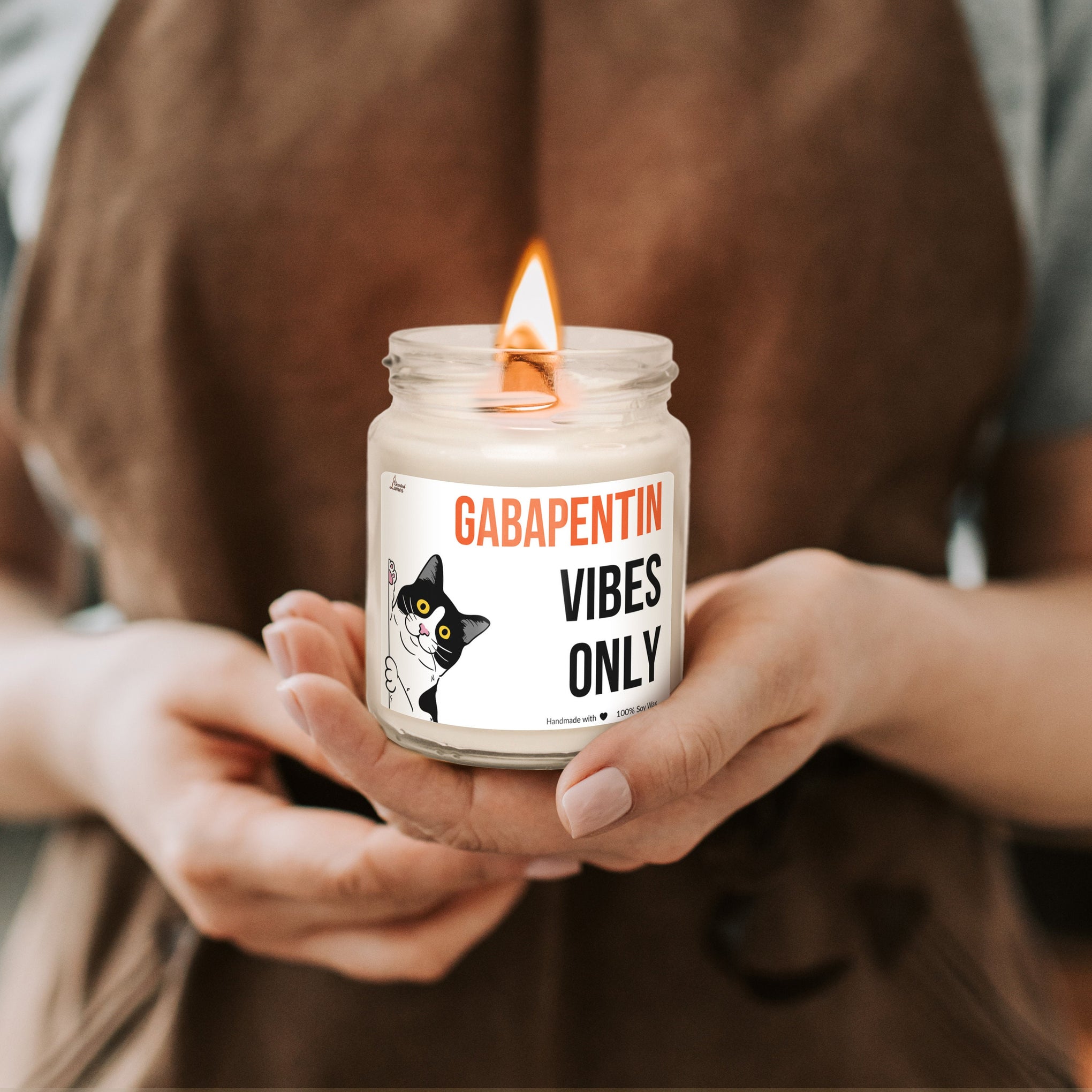 Introducing a unique candle, gift for friends, family, colleagues, with a funny design: Gabapentin vibes only perfect for celebrating Veterinarian, Vet assistant or vet tech for their Birthday, Christmas, Mother's Day, Father's Day, Graduation, World Veterinary Day or any other special day.