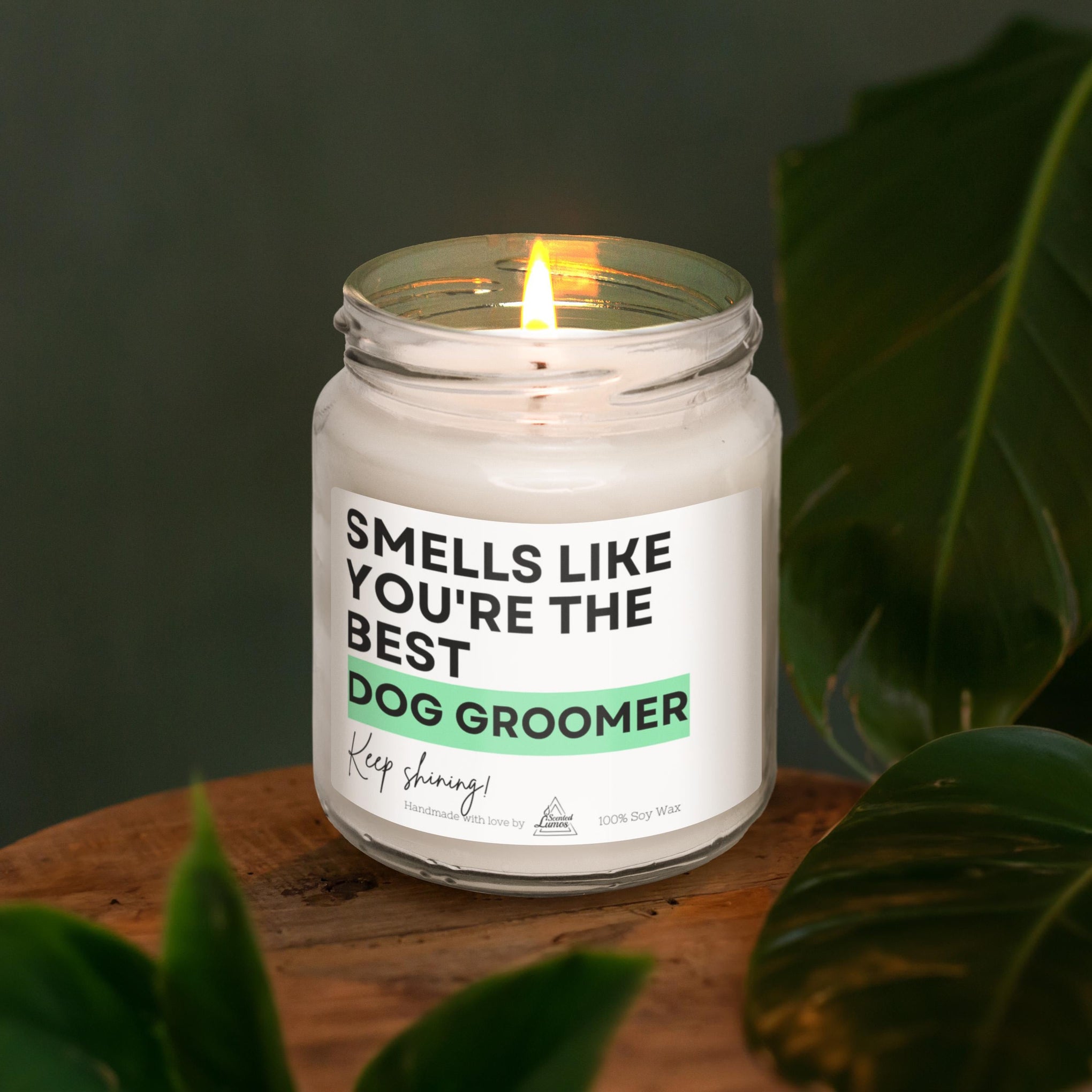 Introducing a unique candle, gift for friends, family, colleagues, with a cool design: Smells like you're the best Dog Groomer perfect for celebrating a Dog groomer for their Birthday, Christmas, Mother's Day, Father's Day, or any other special day.