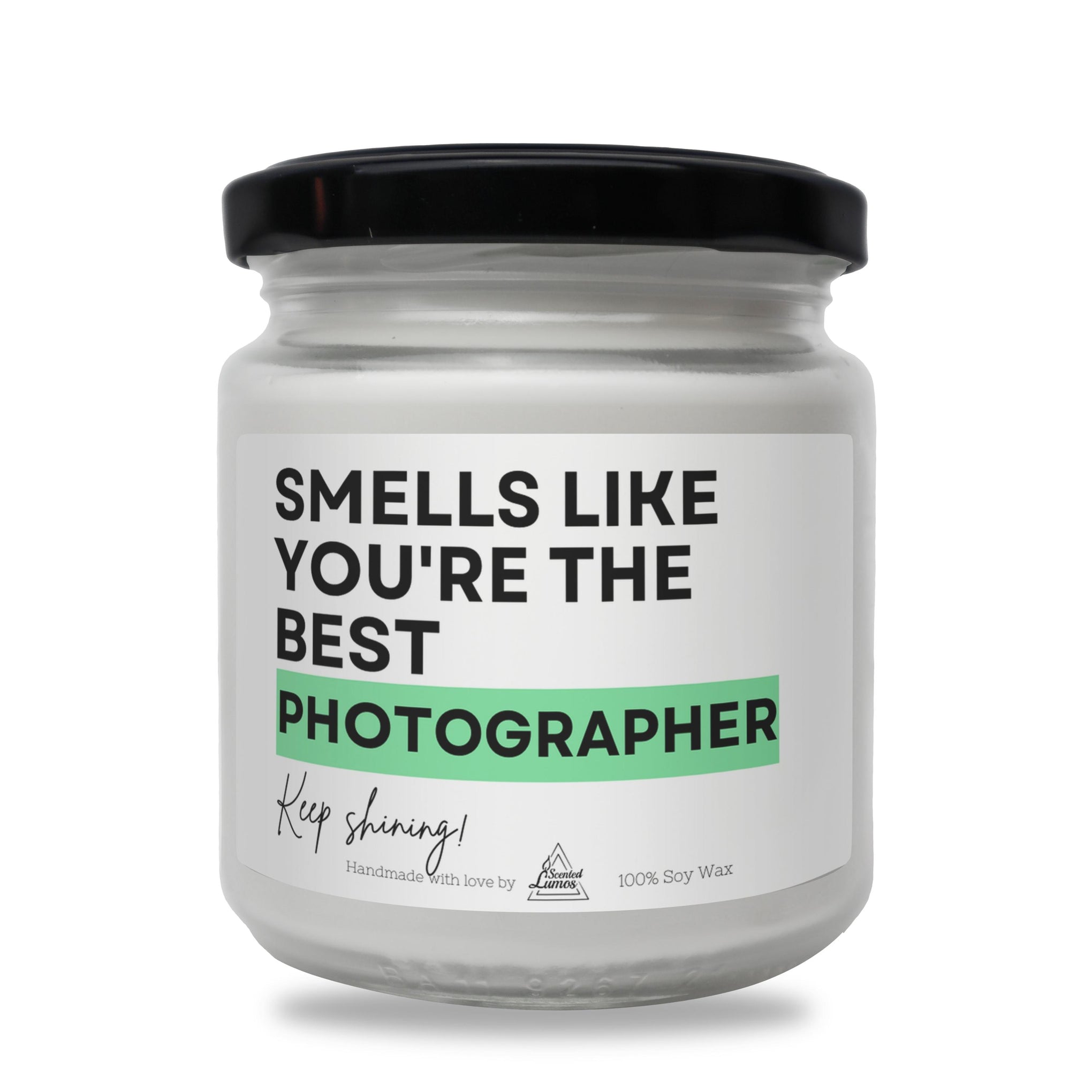 Introducing a unique candle, gift for friends, family, colleagues, with a cool design: Smells like you're the best Photographer perfect for celebrating a Photographer for their Birthday, Christmas, Mother's Day, Father's Day, World Photography Day or any other special day.