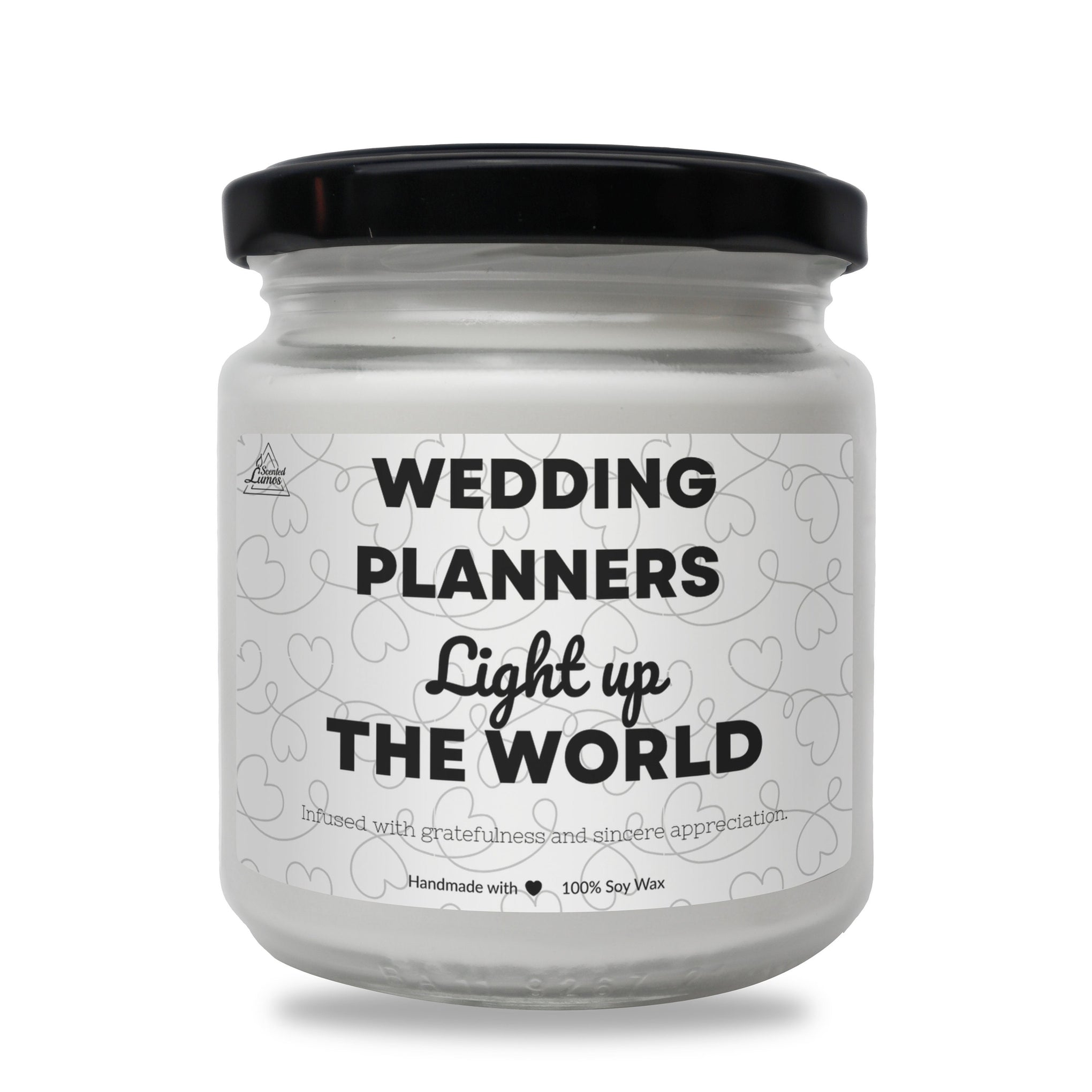 Introducing a unique candle, gift for friends, family, colleagues, with a cool design: Wedding planners light up the world perfect for celebrating a Wedding planner or Wedding coordinator for their Birthday, Christmas, Mother's Day, after the wedding or any other special day.