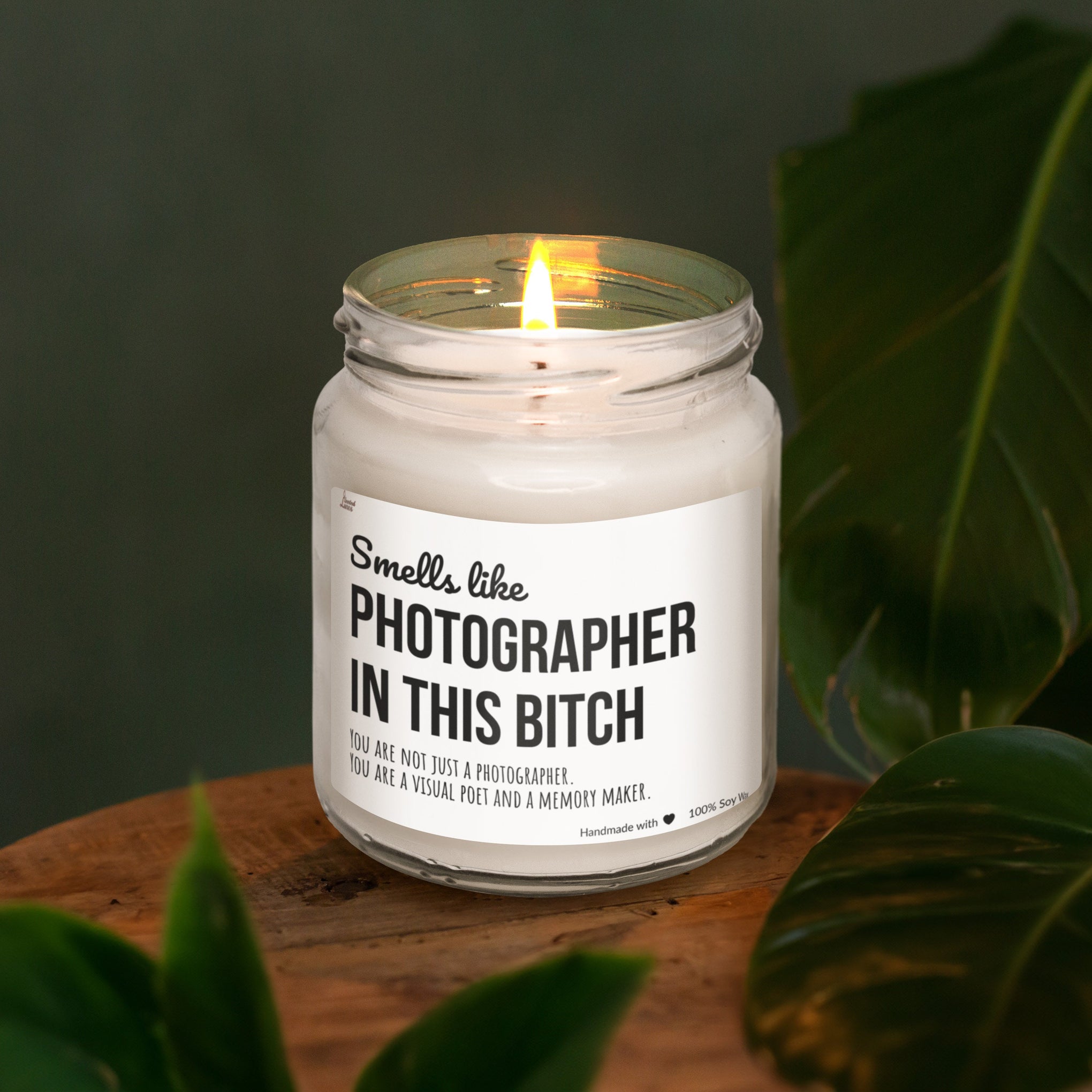 Introducing a unique candle, gift for friends, family, colleagues, with a cool design: Smells like Photographer perfect for celebrating your favorite photographer for their Birthday, Christmas, for Mother's Day or any other special day.